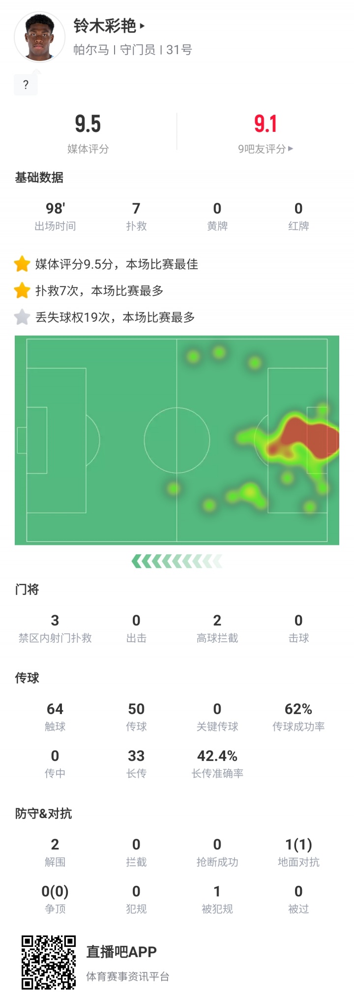 2025-10-20 00:02:55太强了!铃木彩艳压哨扑点救主+7扑救 单场9.5分助十人帕尔马拿分