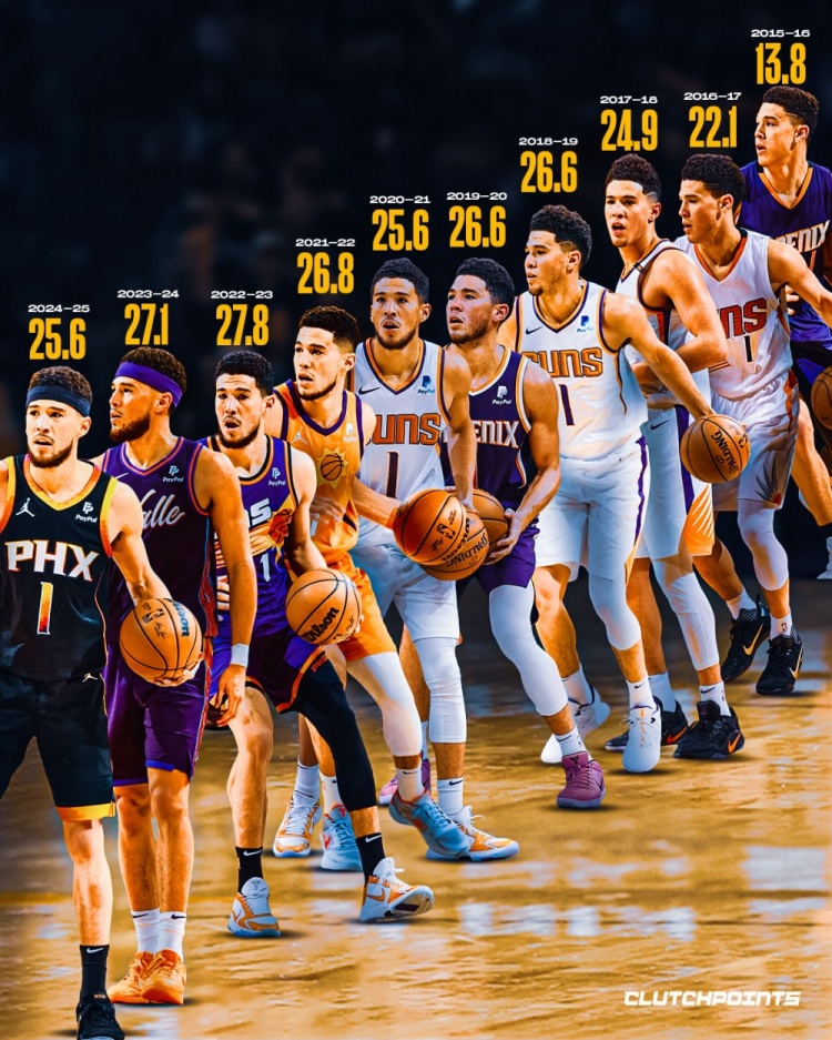 2025-10-22 17:31:21布克生涯各个赛季场均得分一览!已连续7个赛季25+!
