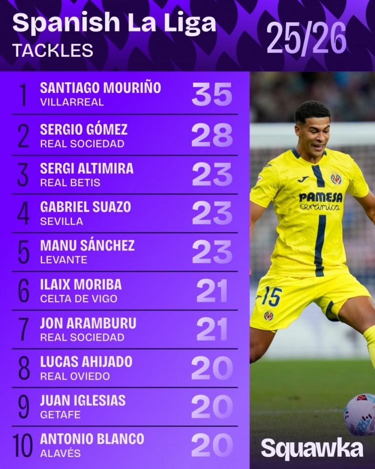 2025-10-08 00:01:38西甲解围次数排行:黄潜后卫S-穆里尼奥居首 塞尔吉奥-戈麦斯第二